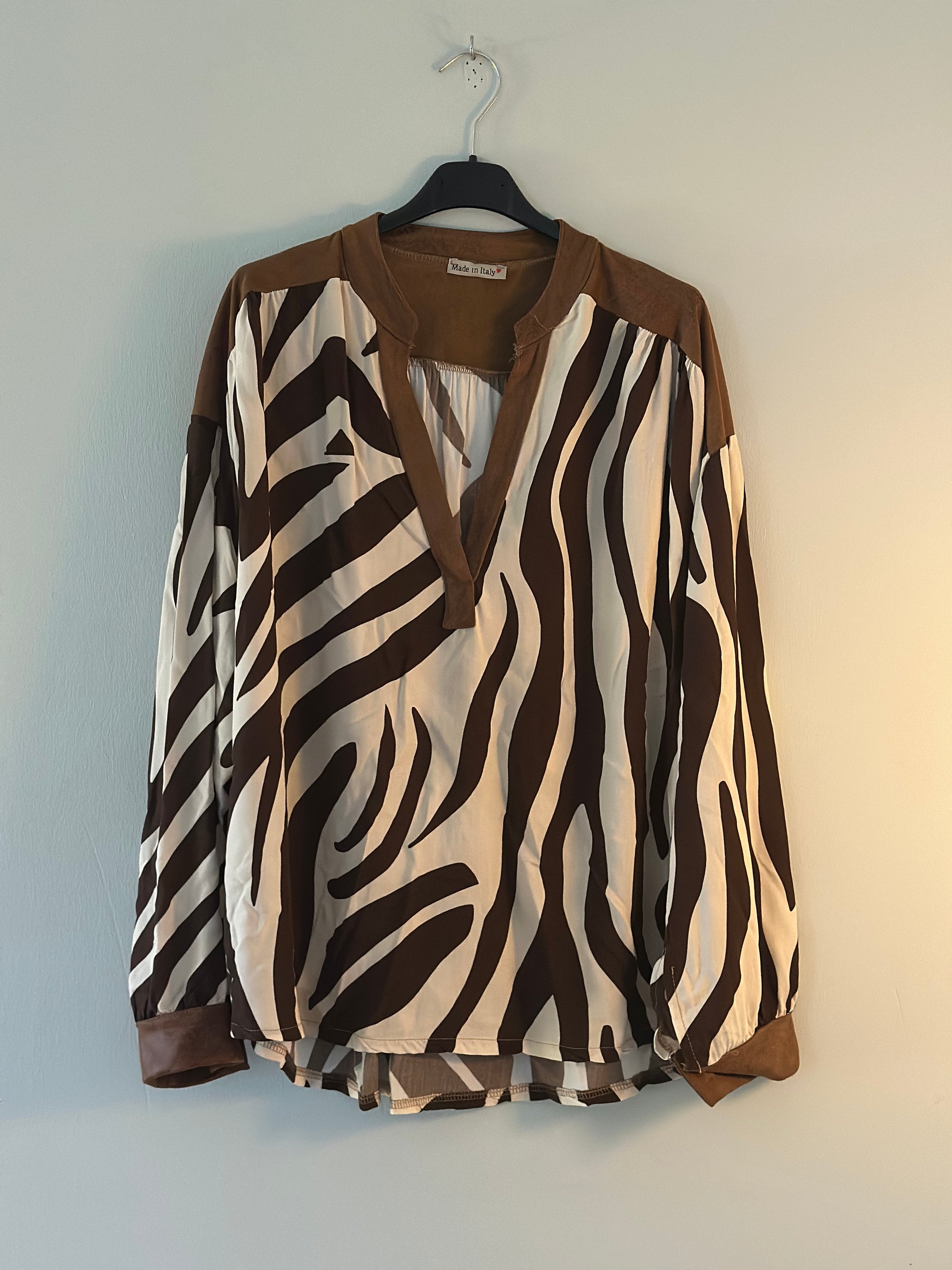 Blus ”Carina” med mockaimitation på axlarna - Zebramönster