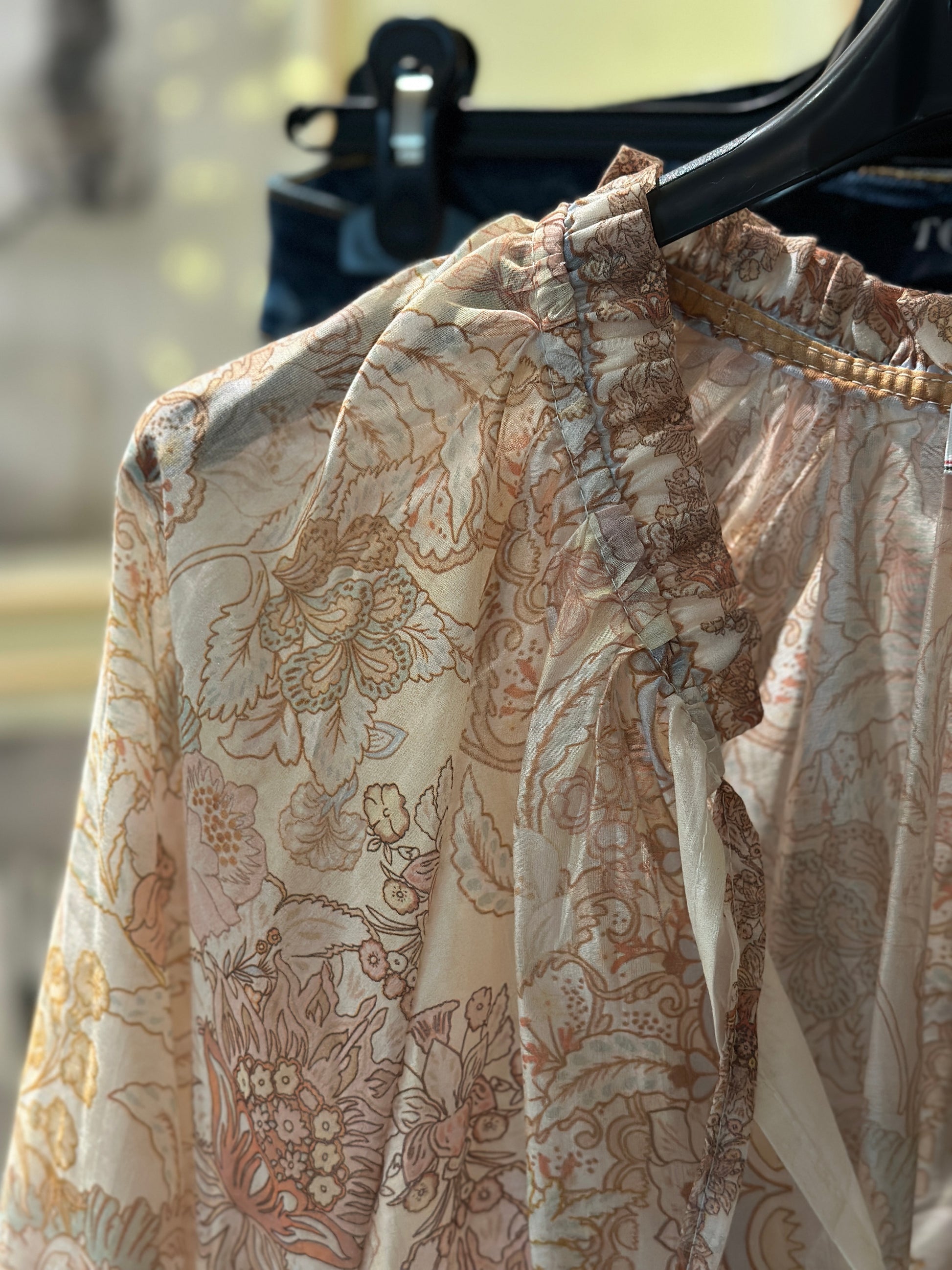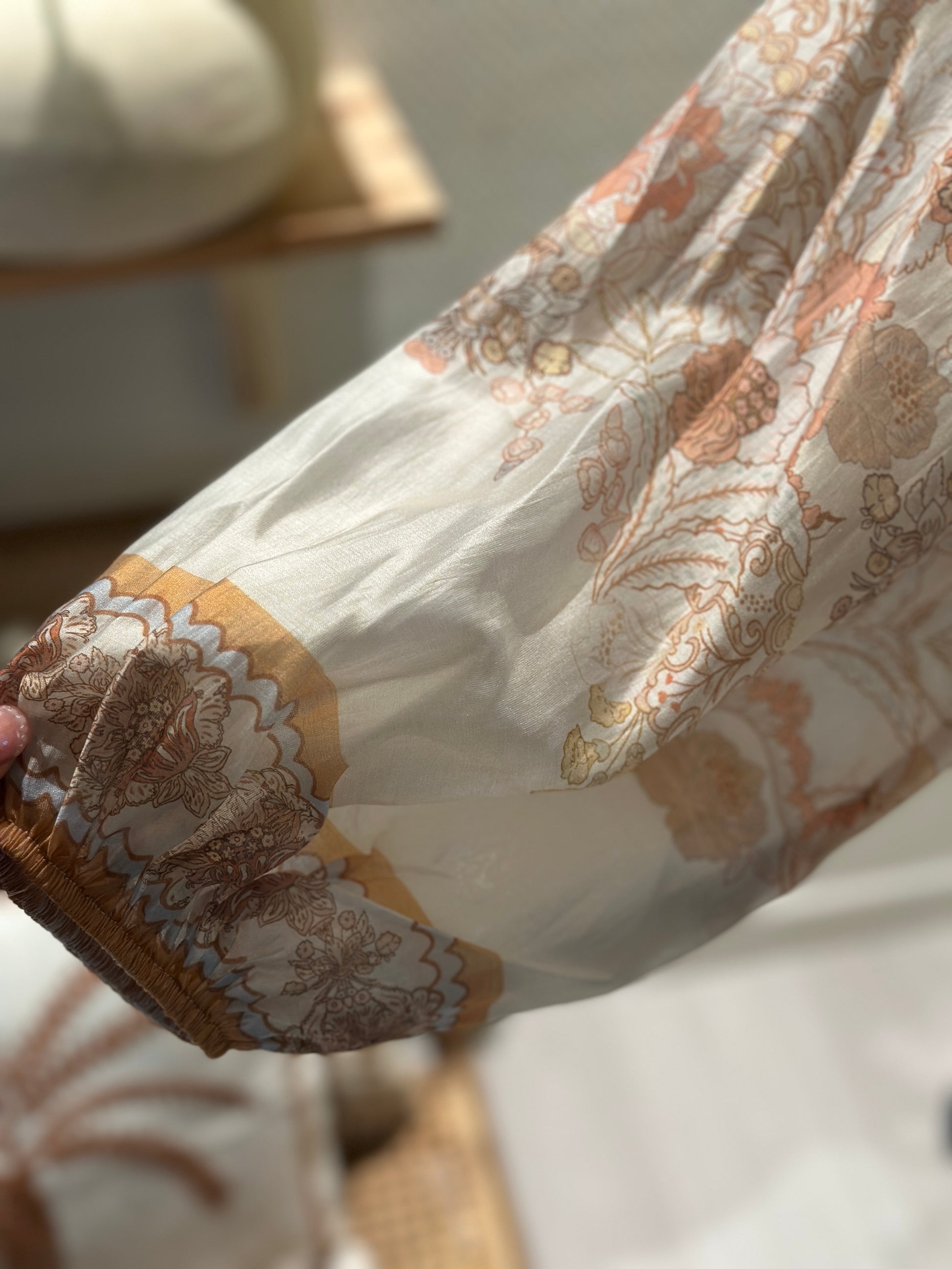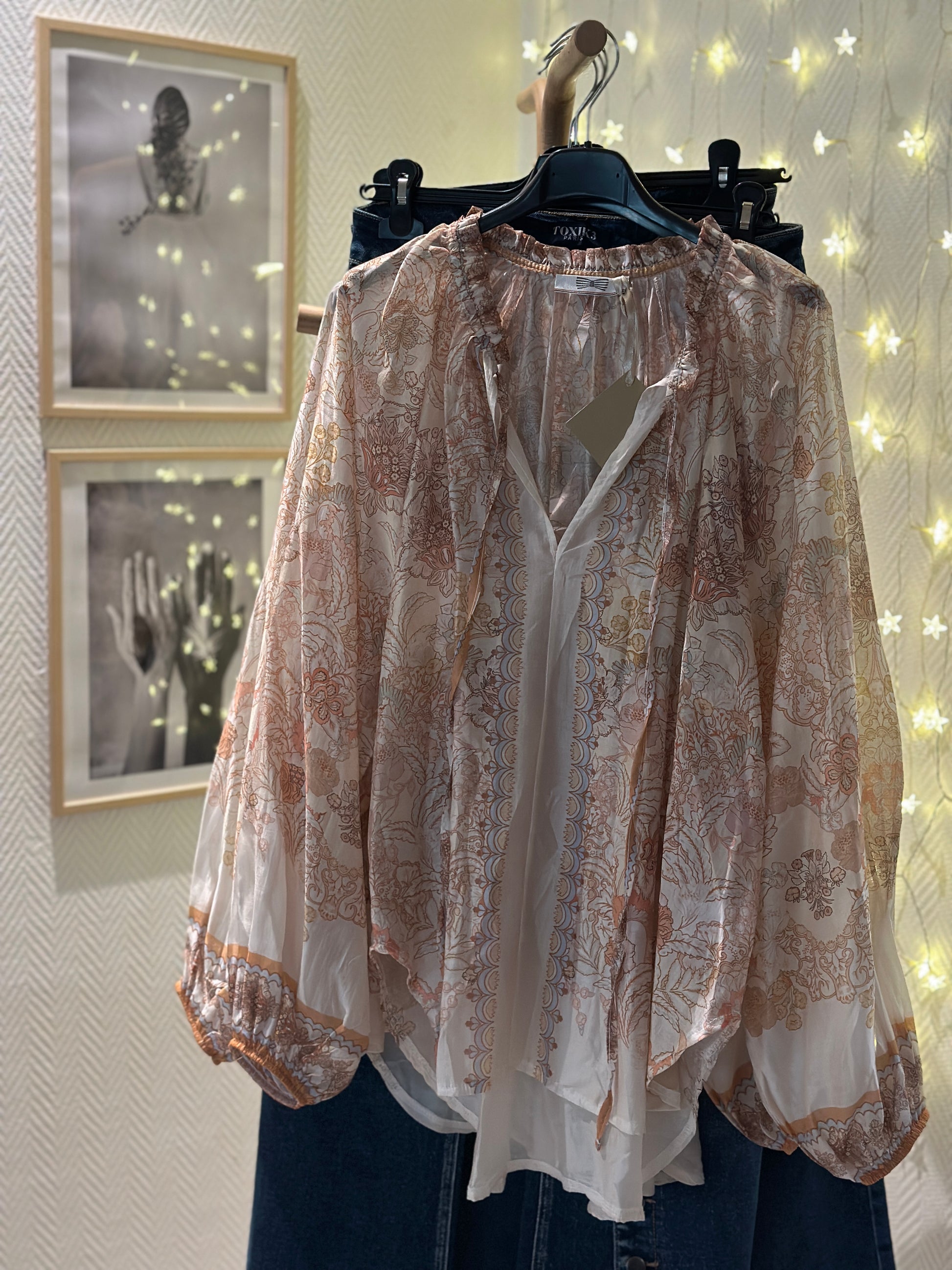 Blus ”Nancy” med vackert mönster och ballongärm - offwhite