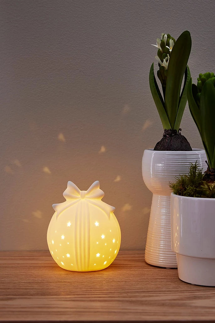 Fin bordsdekoration i vitt porslin. Drivs av 2xAAA batterier. Perfekt till julbordet och ger en mysig känsla i ditt hem. Rozy finns tillgänglig i två storlekar.