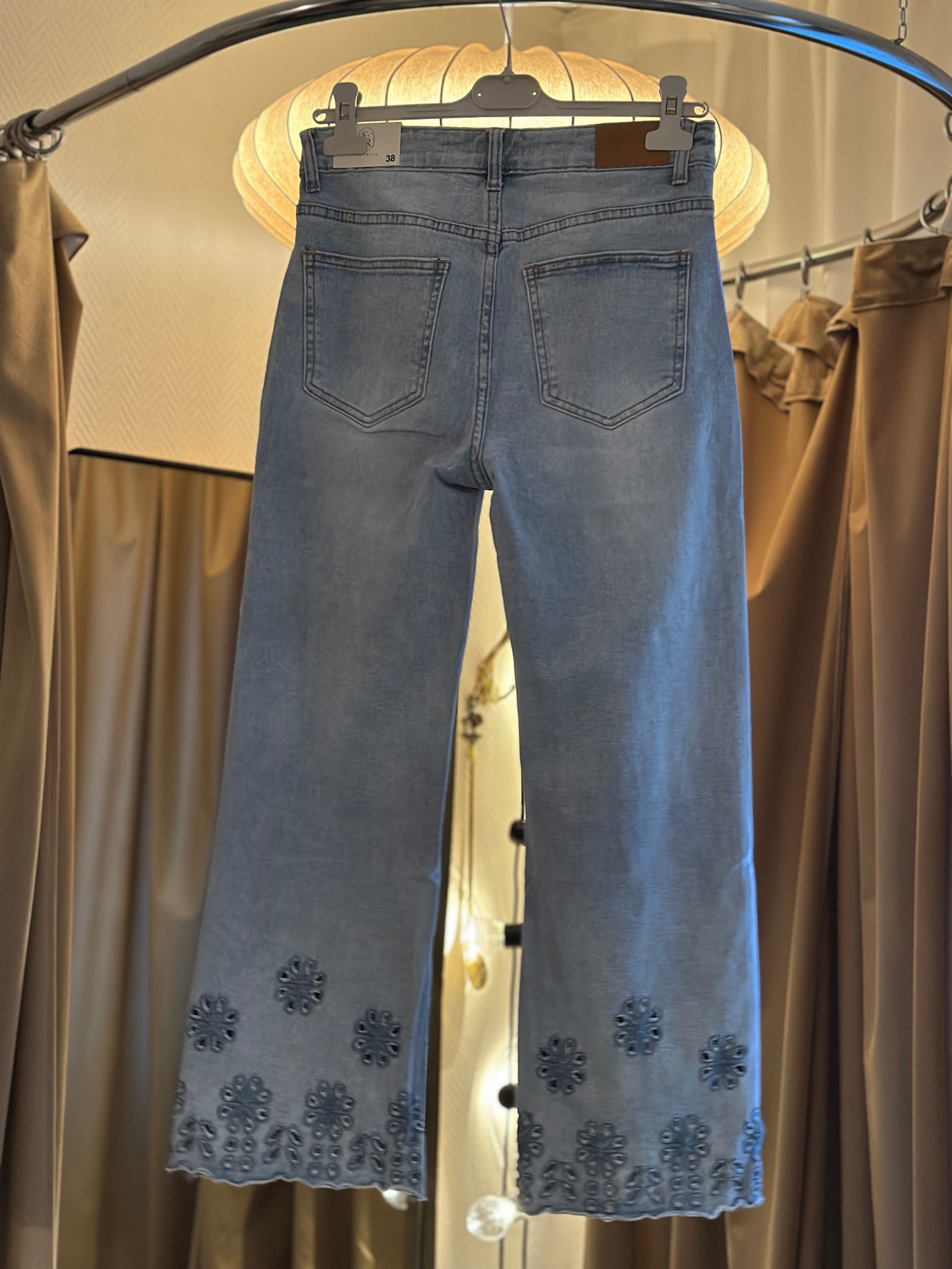 Folyrose, jeans med broderi nertill - Ljusblå denim