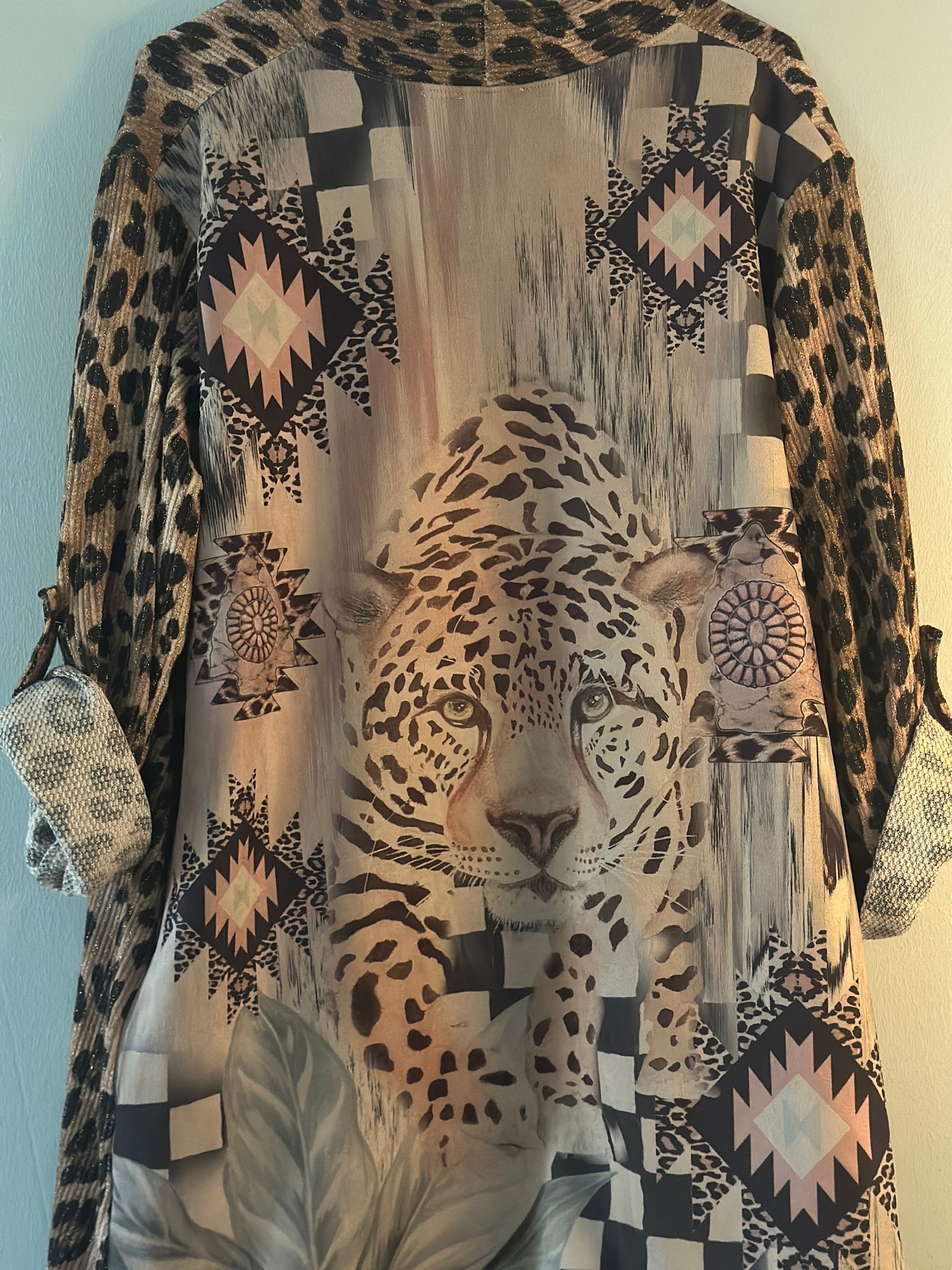 Kimono ”Sylvia” med tryck på ryggen - Leomönster