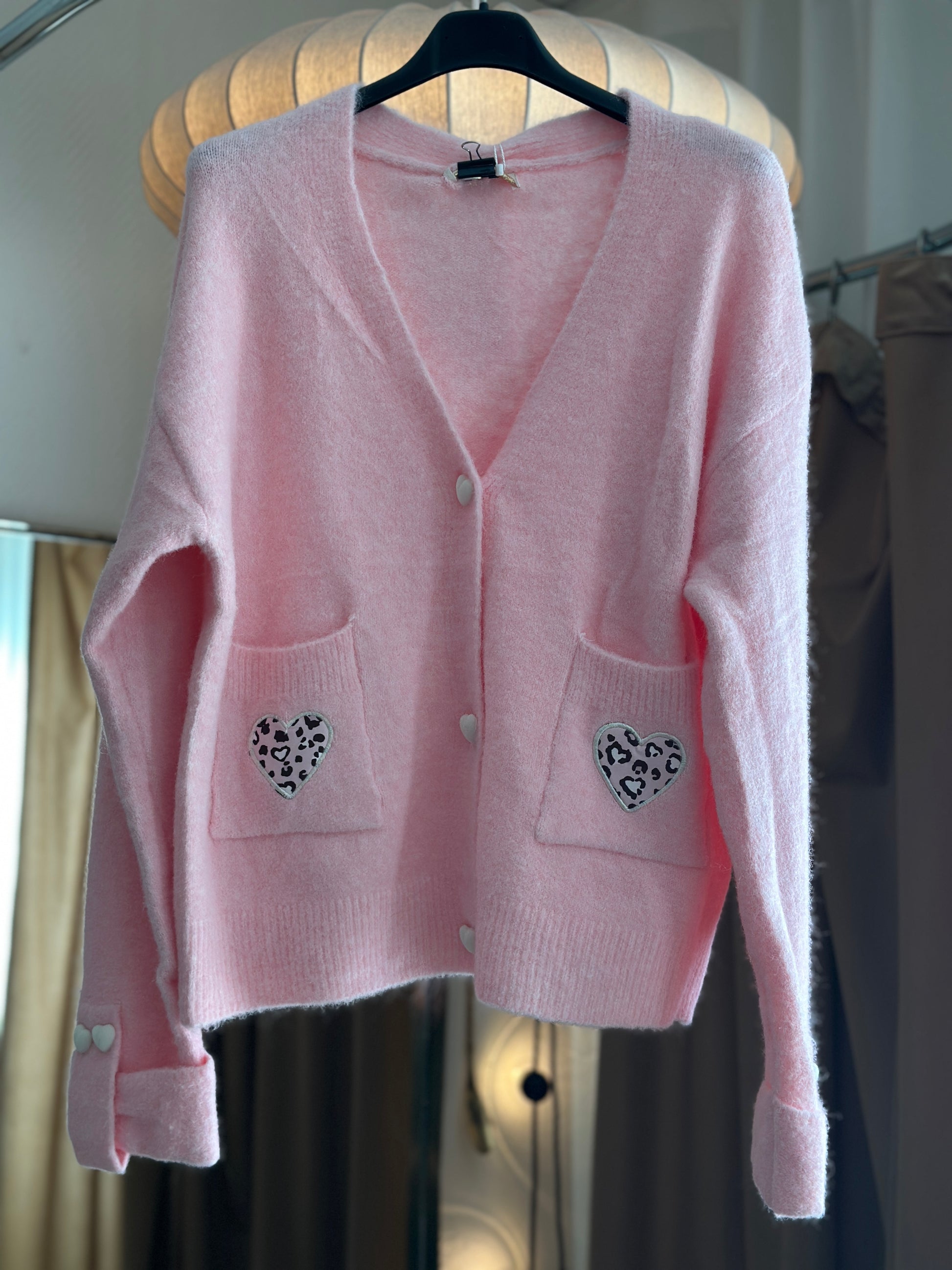 Kofta ”Sabrina” med hjärtmönstrade knappar framtill och i ärmslutet - Rosa
