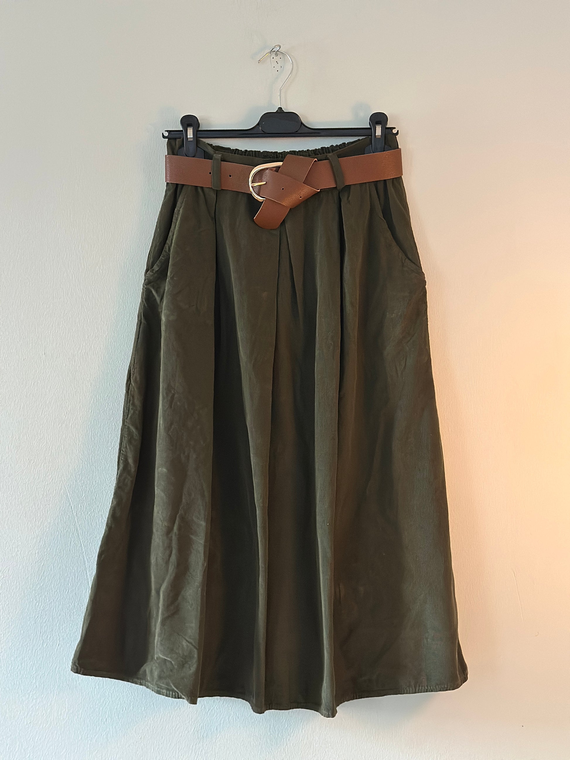 Manchesterkjol ”Sanela” med bälte - Kaki