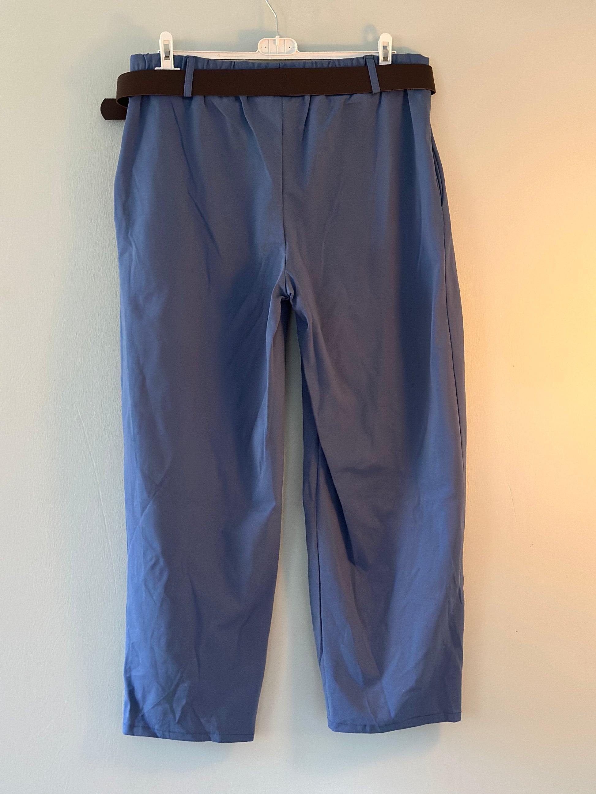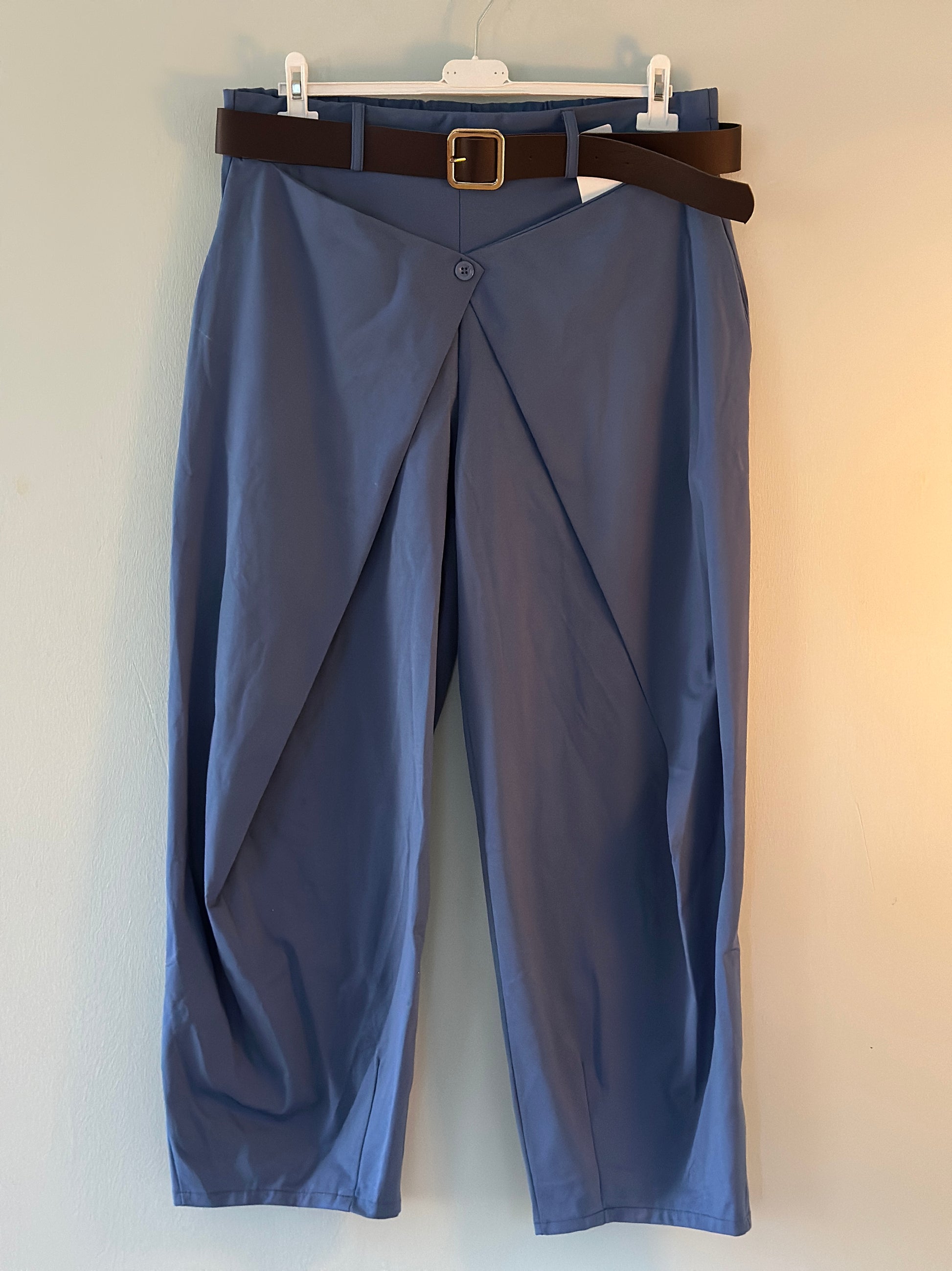 Plus Size, Byxor med skärp och knapp framtill - Ljusblå/Mörkblå