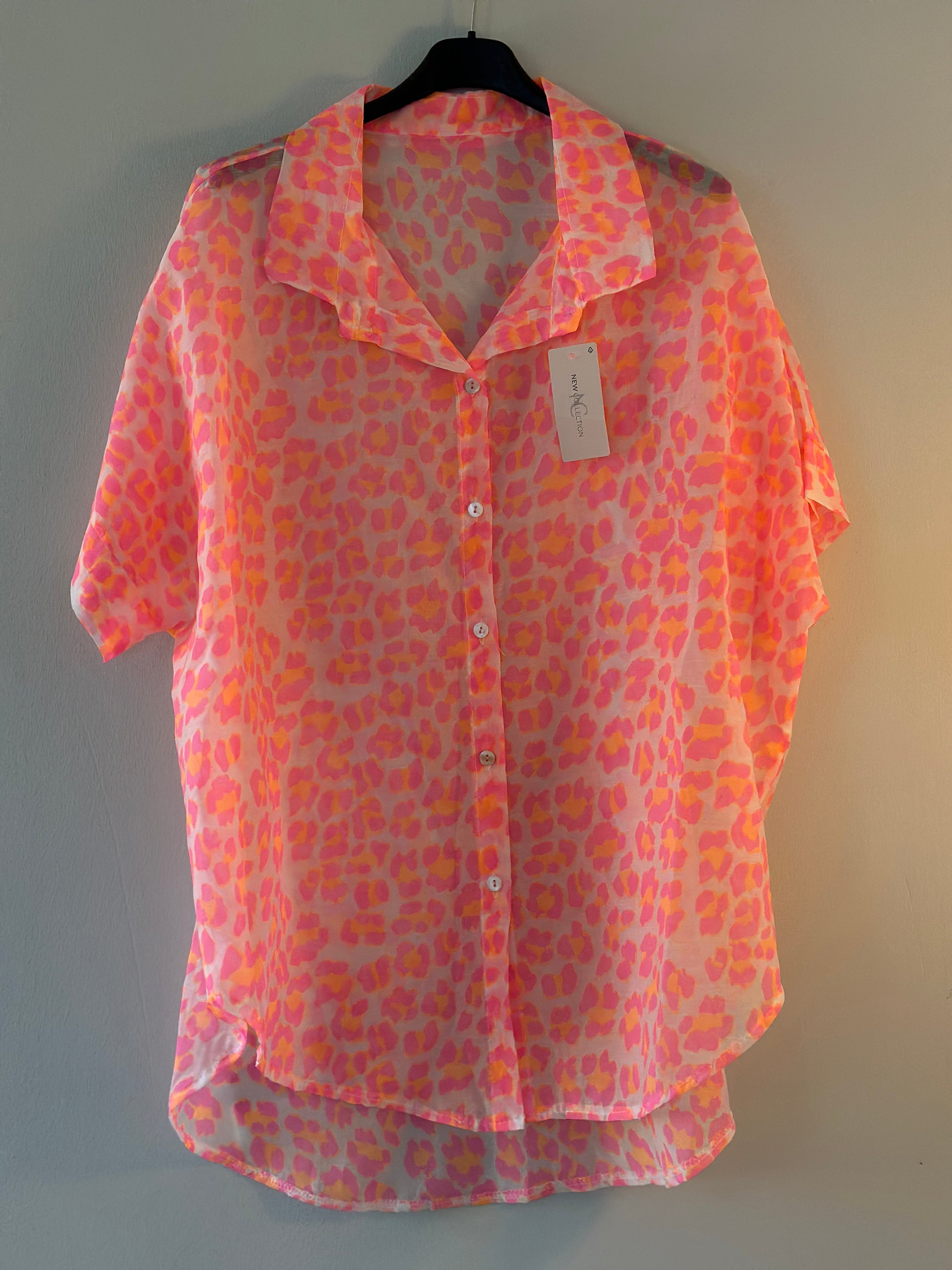 Plus Size, Leomönstrad blus med kort ärm - Rosa