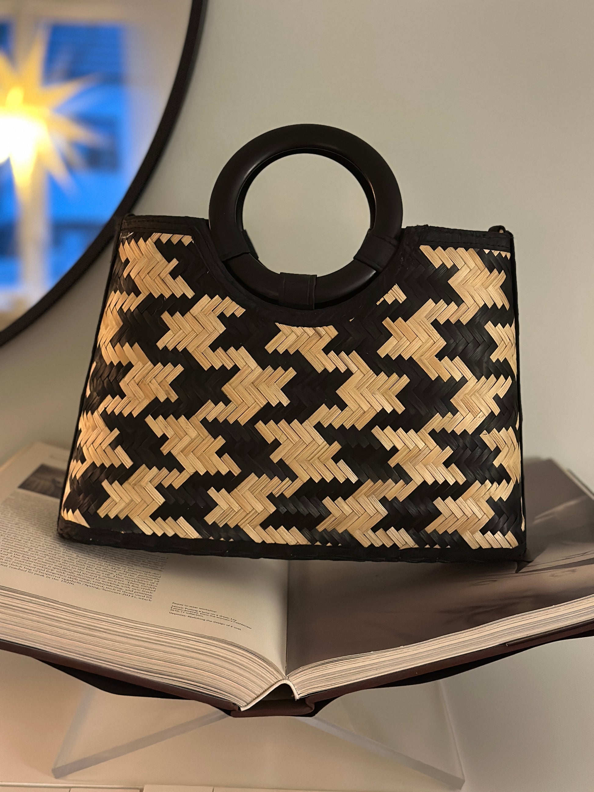 Rottingväska ”Sandra” med trähandtag - Svart