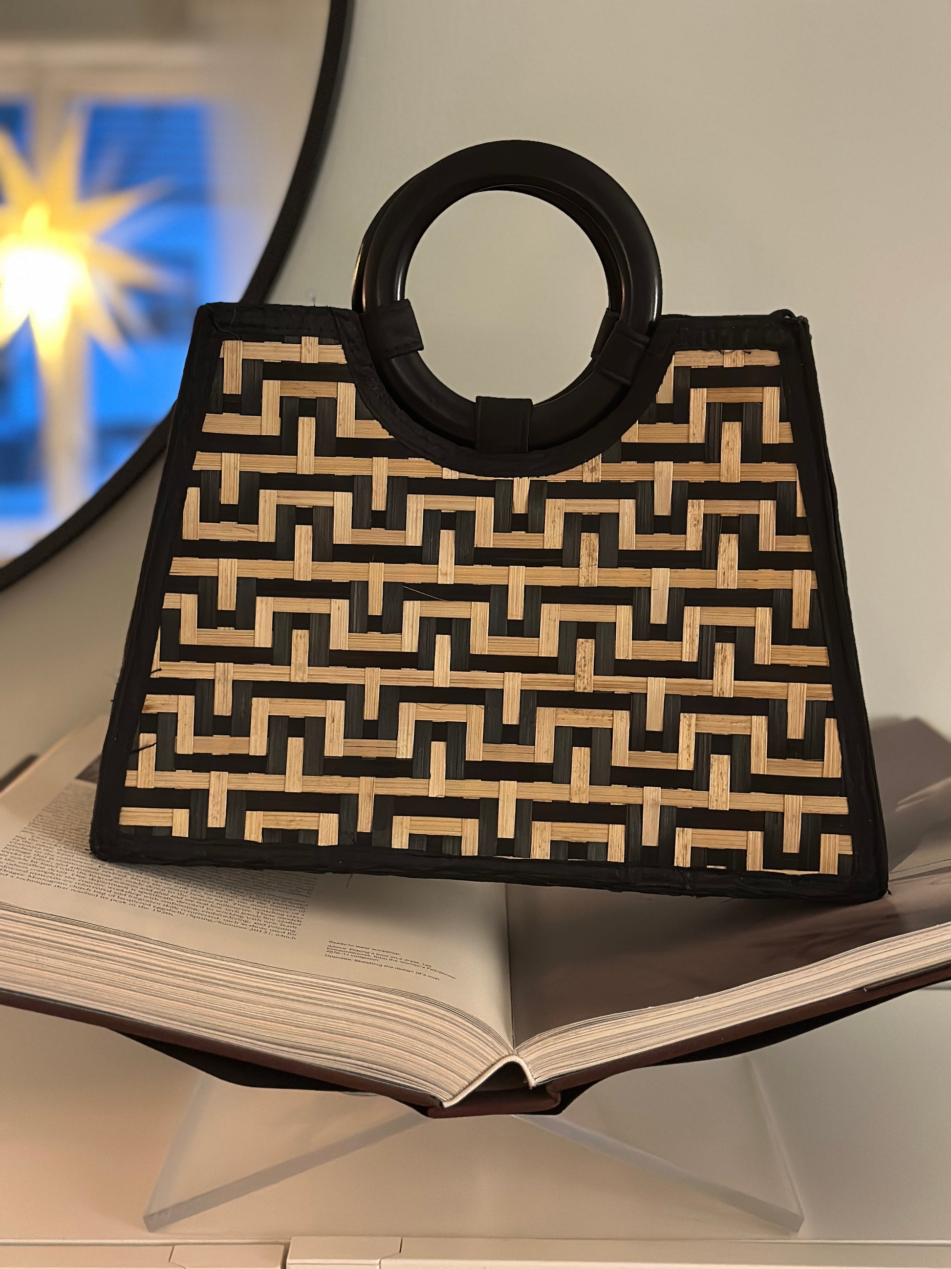Rottingväska ”Sara” med trähandtag - Svart