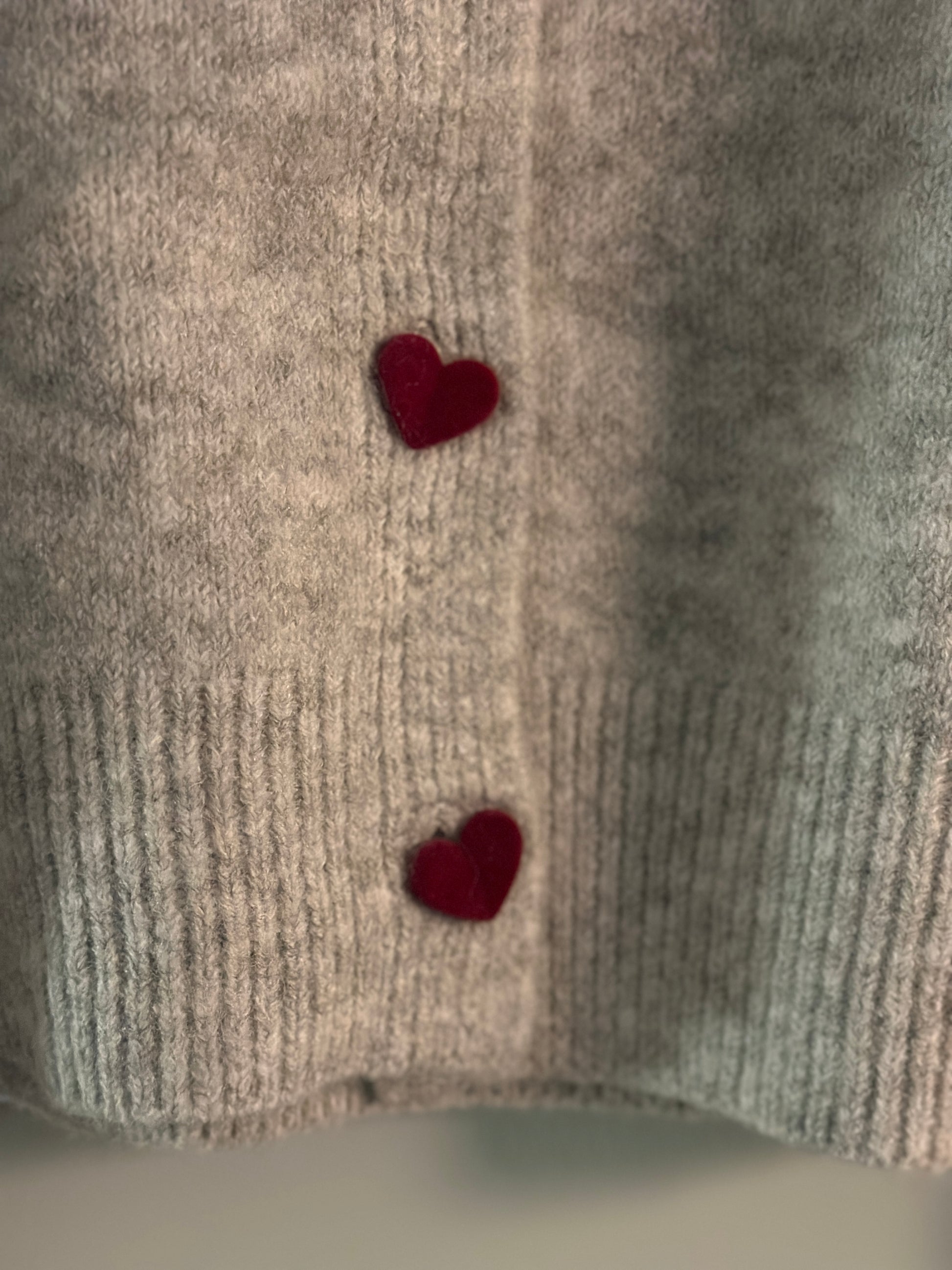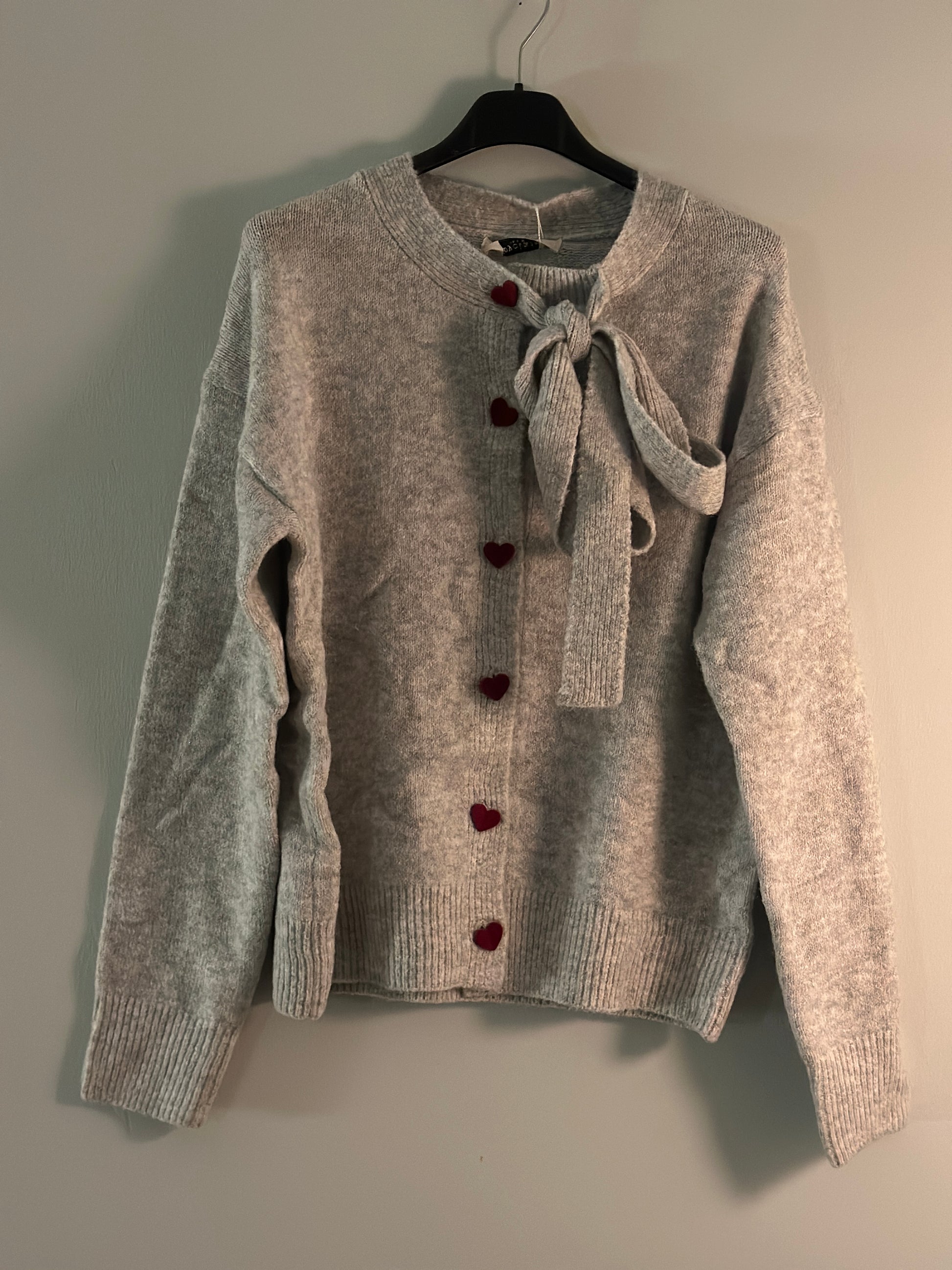 Söt kofta med knyt i halsen och hjärtformade sammetsknappar - Grå