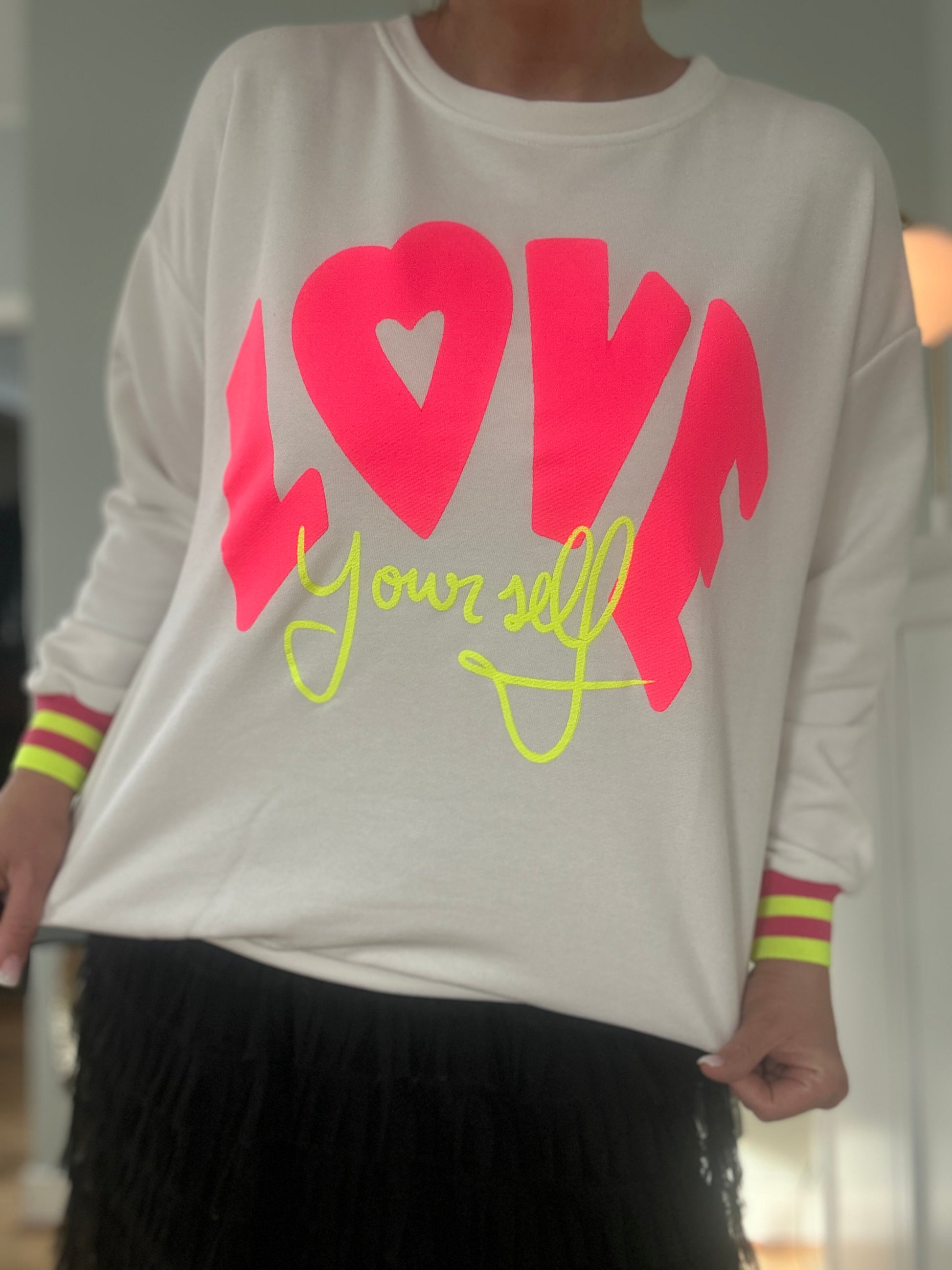 Sweatshirt ”Love Yourself” - Vit/Rosa/Ljusblå