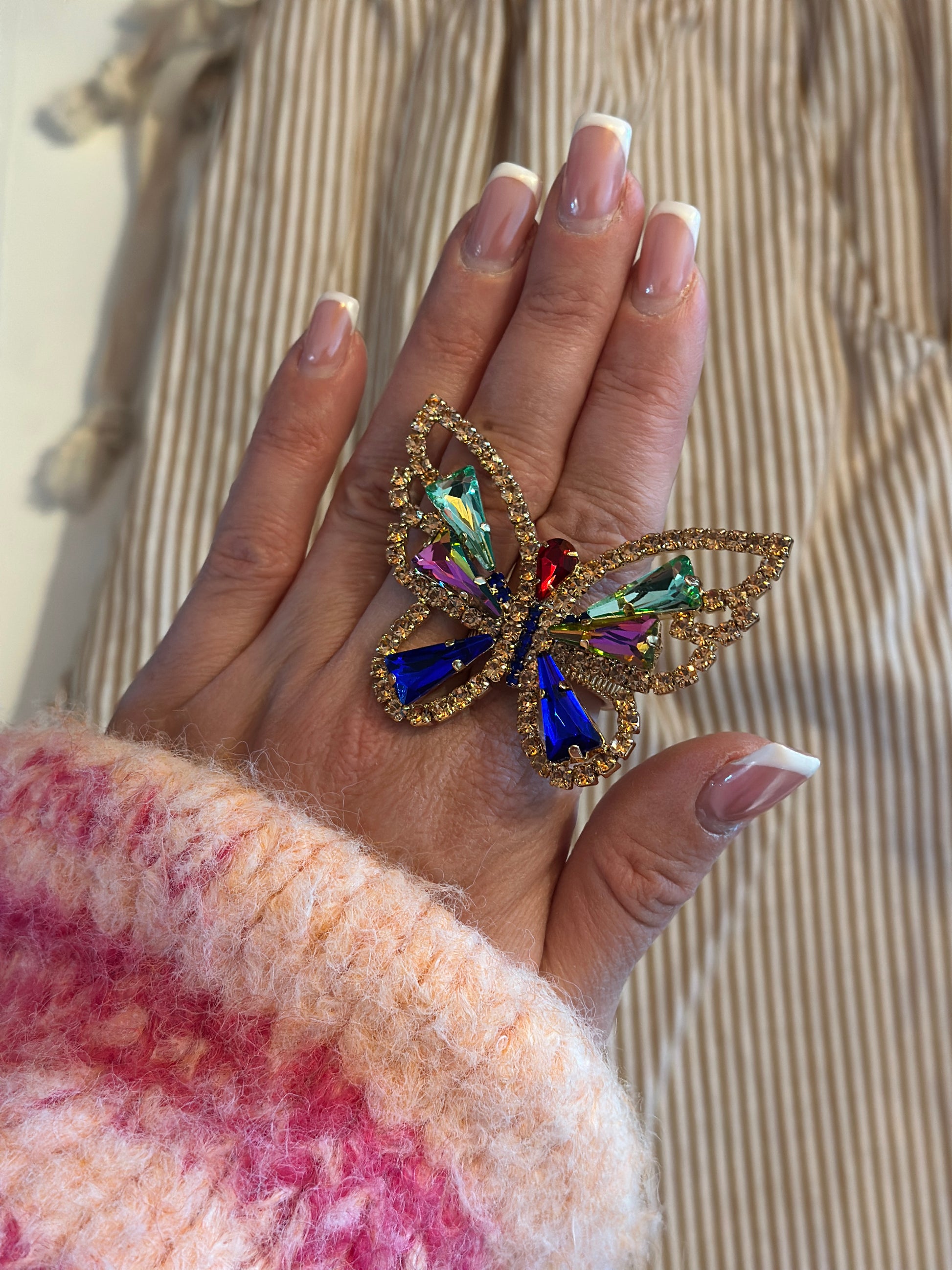 Töjbar ring med fjäril - Aprikos/Multicolour/Svart