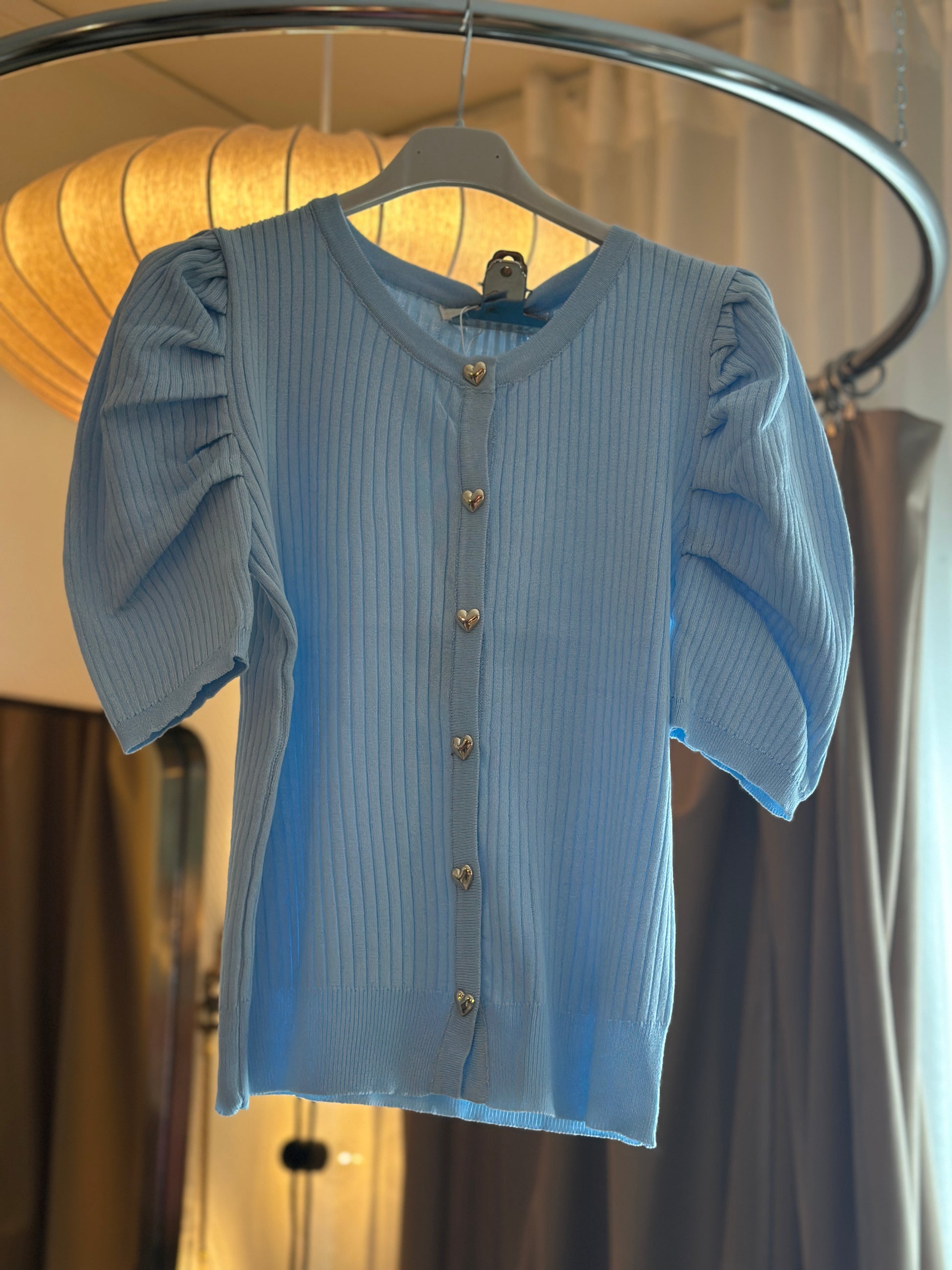 Top ”Sara” med hjärtformade knappar och puffärm - Rosa/Vit/Ljusblå