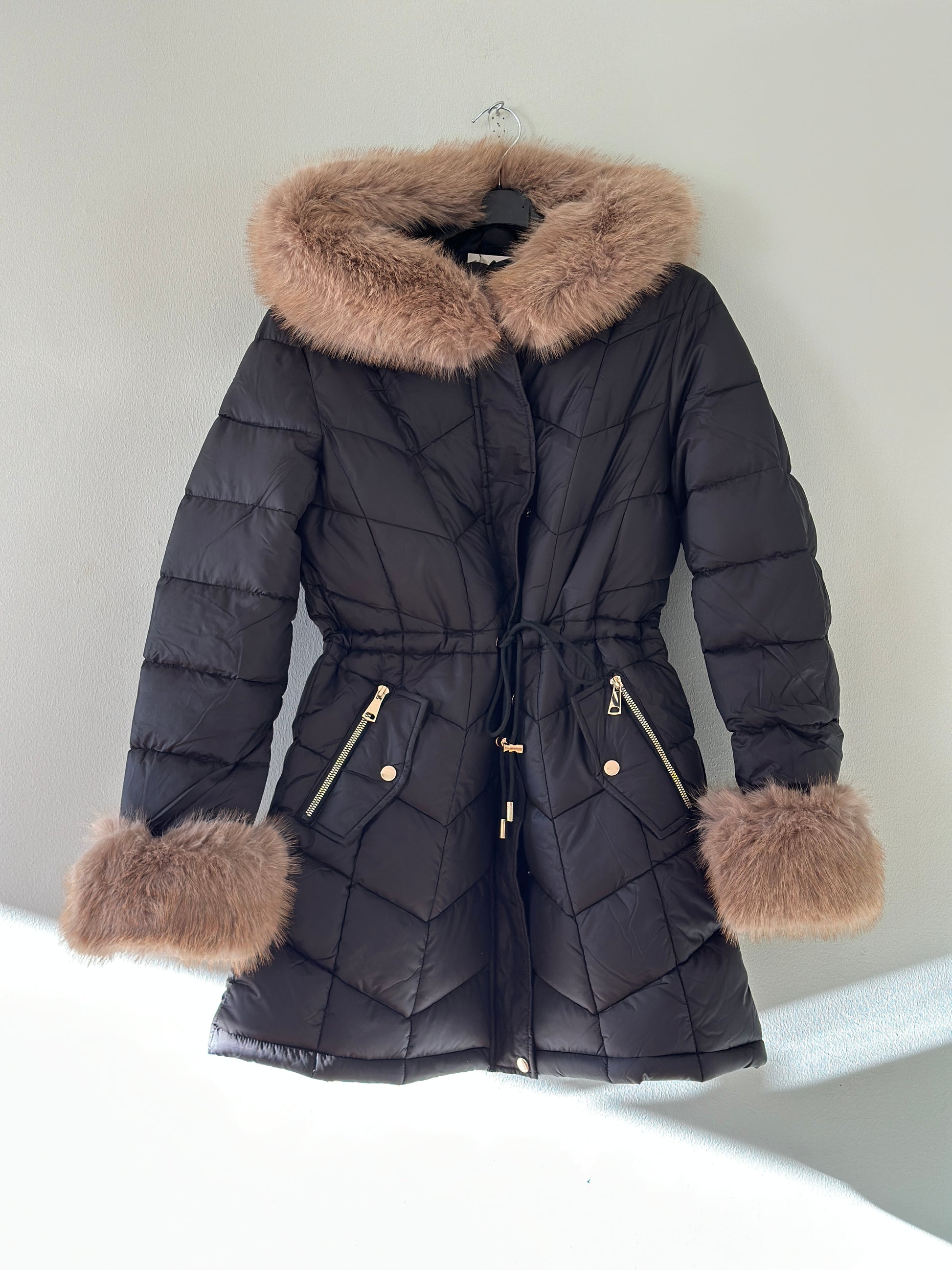 Vinterjacka ”Joline” med fuskpäls på luvan och ärmarna - Svart